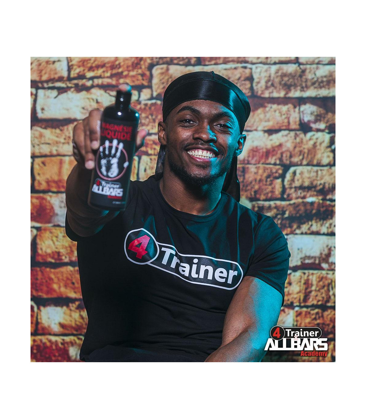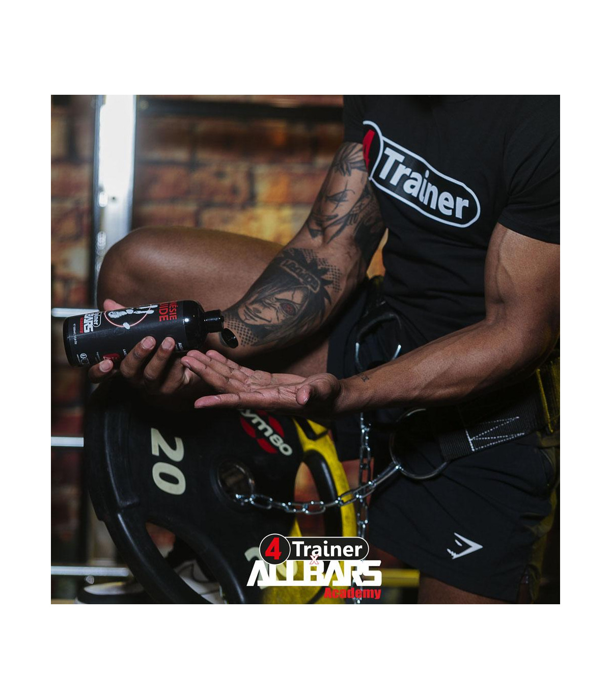 • COLLAB ALLBARS X 4TRAINER : Cette magnésie liquide a été développée en partenariat avec la Team Allbars, la référence en Street workout et Street Litfting et 4Trainer , marque numéro 1 en préparation physique . Sa recette a été optimisée afin d’améliorer le confort et l’adhérence des mains pour une meilleure performance.