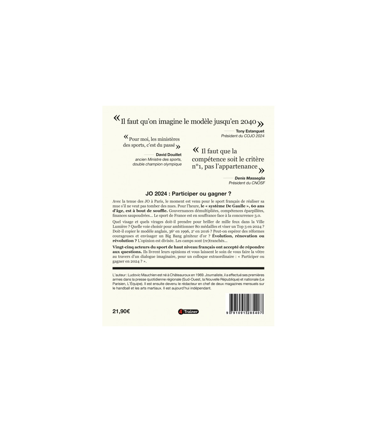 C’est la première enquête exclusive et approfondie sur l’organisation du sport de haut niveau en France. Regroupant les témoignages de nombreuses personnalités incontournables du sport français, Ludovic Mauchien propose une réflexion ouverte sur le système actuel de performance, en présentant ses forces et ses faiblesses.