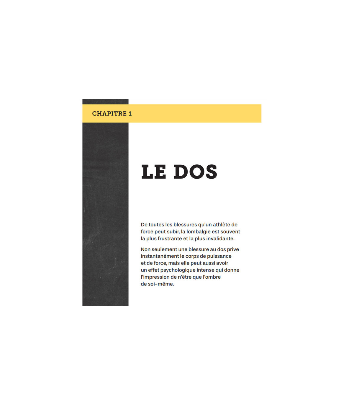 Conçu pour les athlètes de force mais adapté à tous ceux qui aiment se dépasser en salle de sport, ce livre vous permet de reprendre le contrôle de votre corps. Que vous souffriez d'un mal de dos tenace ou que vous vous remettiez d'une blessure au genou ou à l'épaule, le Dr Aaron Horschig propose un plan de rééducation étape par étape pour vous permettre de reprendre vos activités sportives que vous aimez, sans douleur.