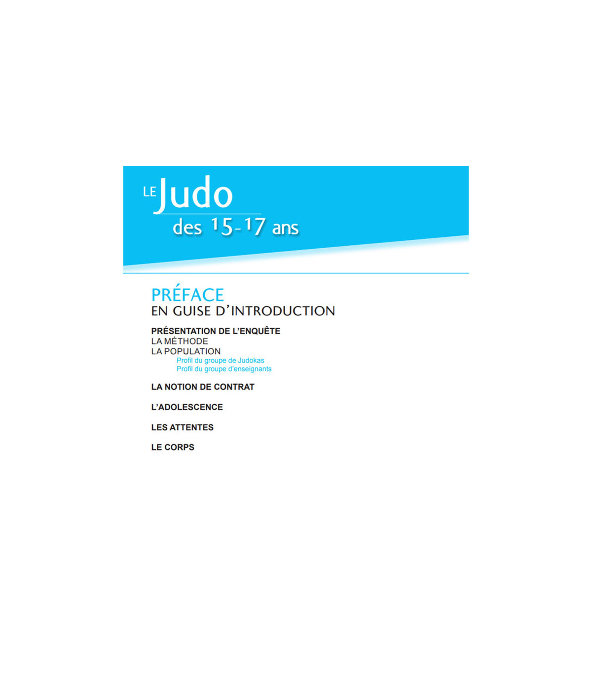 C'est une évidence, le judo des 15/17 ans passe par la formation technique et physique. La relation du judoka avec son professeur est primordiale, pour permettre à l'élève de progresser et faire passer le bon message à l'adolescent. Cette relation, s'appuie sur un bagage technique et physique adapté et permet à l'adolescent de bien appréhender la compétition. La compétition, qu'elle mène ou non au haut niveau, aide l'adolescent à faire face à des situations de réussite lui permettant de façonner sa personnalité et de construire son identité au-delà du cercle du sport.