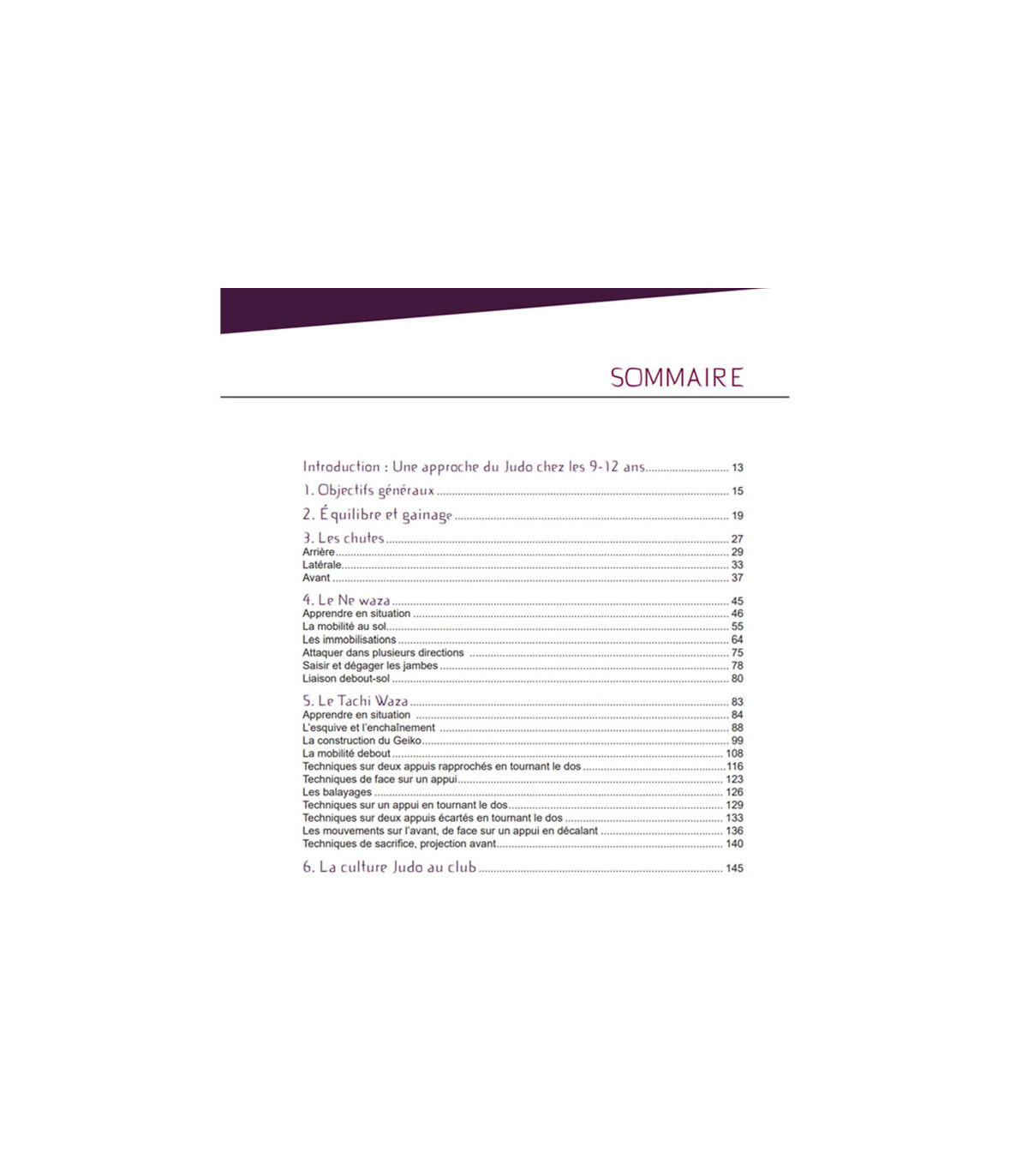 La dernière mise à jour de l'ouvrage de référence "le judo des 9-12 ans" propose ainsi une approche ludique et progressive du judo pour les adolescents, pour mieux les accompagner de l'initiation à l'opposition à la technicité d'un judo en mouvement.