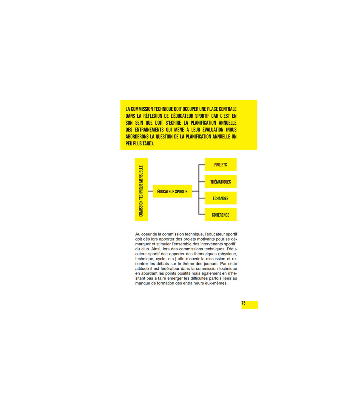 Dans un milieu extrêmement varié et diversifié les auteurs proposent, à partir d’un vécu et d’une longue expérience, des propositions et des pistes de réflexions pour les éducateurs sportifs exerçant leur profession dans des clubs sportifs dont les équipes évoluent dans les niveaux départementaux et régionaux. L’éducateur sportif doit fédérer autour d’un projet clairement défini qui va permettre aux jeunes adhérents, dans l’association, de donner du sens à leur pratique sportive.