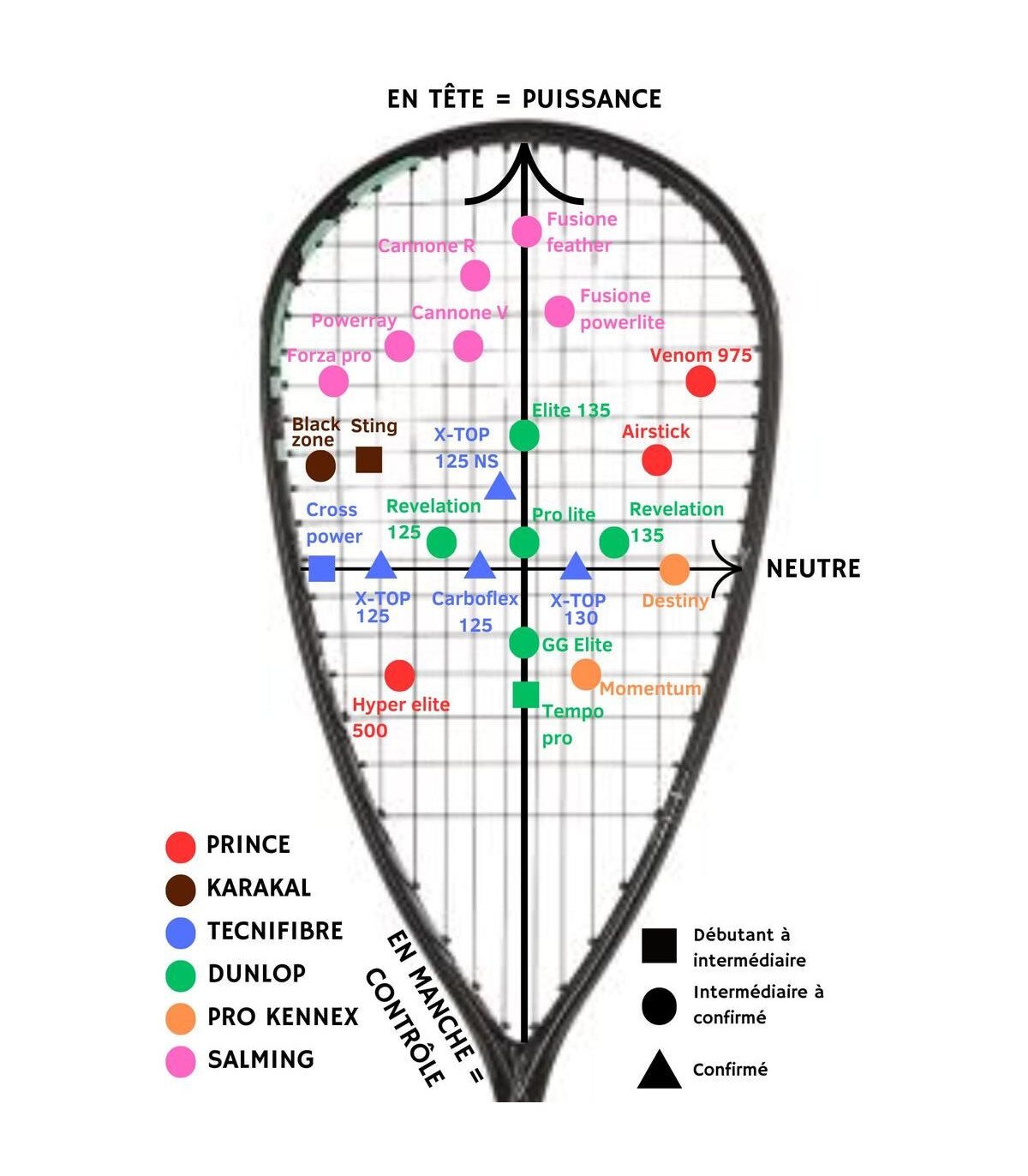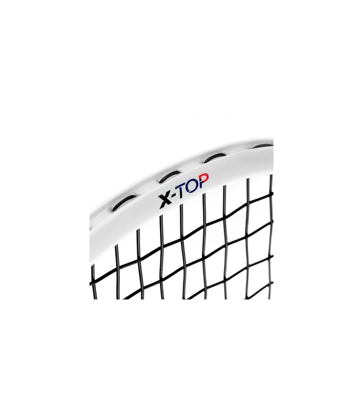X-TOP : Technologie brevetée remplaçant le bumper plastique par un mélange de fibres actives et d’aramide pour une résistance supérieure, une meilleure vitesse et une durabilité accrue. Le traitement PTFE améliore la glissance et protège le cadre de l’abrasion. L’absence de bumper rend la raquette plus aérodynamique et plus rapide dans l’air, tout en réduisant les vibrations pour plus de confort.