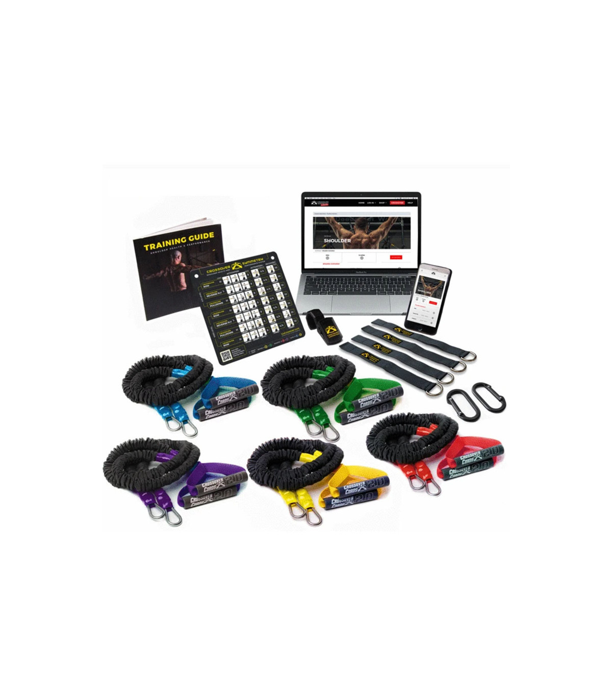 • GUIDE DE FORMATION : Guide de 45 pages (en anglais) décrivant les exercices, l'équipement et les conseils de sécurité pour prendre soin de vos épaules.
